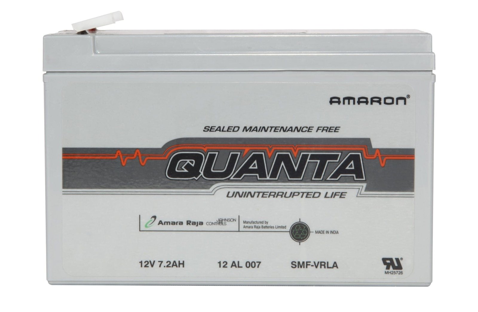 The Amaron Quanta 12AL007 is a 12V 7Ah sealed maintenance-free (SMF) VRLA battery designed for UPS systems, emergency lighting, and security applications. It features advanced AGM technology, ensuring consistent power delivery, zero maintenance, and superior reliability for standby power solutions.
