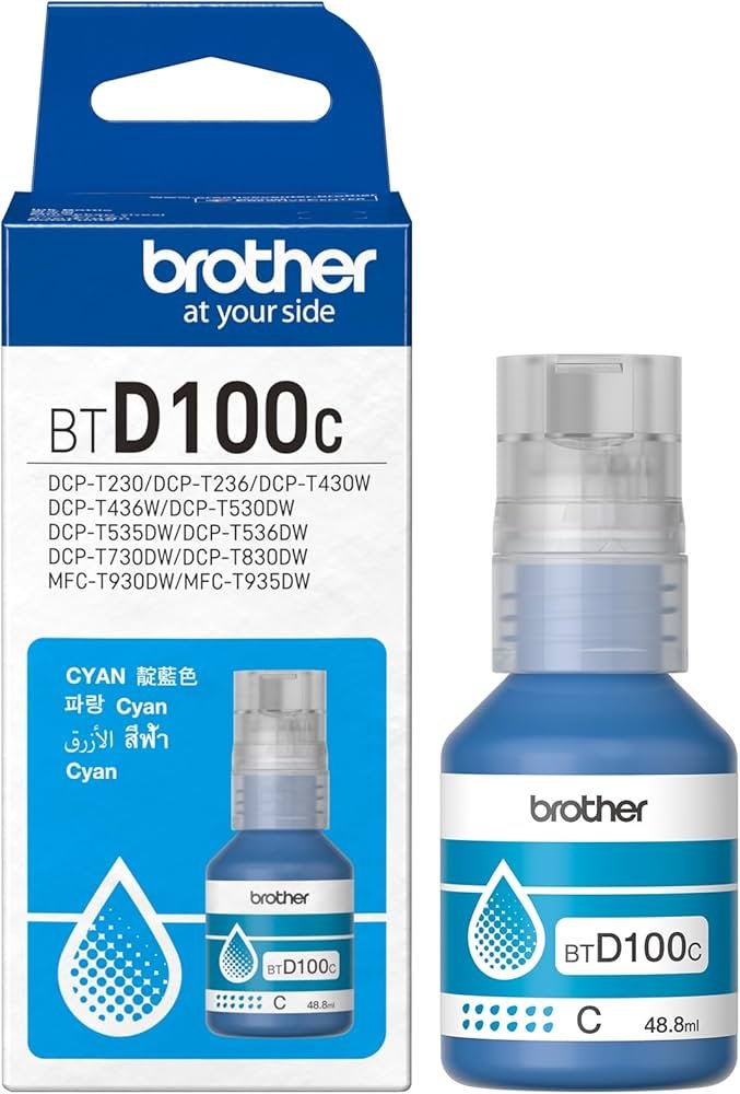 The Brother BTD100C Cyan Ink serves as a high-capacity consumable for the latest generation of Brother Ink Tank System printers. This dye-based ink formulation provides a yield of approximately 5,000 pages based on the ISO/IEC 24712 test pattern. Engineers developed this specific ink to maintain optimal surface tension and viscosity. These properties ensure consistent flow through the capillary tubes of the Continuous Ink Supply System (CISS). Consequently, the fluid dynamics prevent air bubbles and nozzle clogging during high-speed printing cycles. This bottle features a keyed nozzle design that aligns specifically with the cyan tank port to prevent cross-color contamination during the replenishment process.