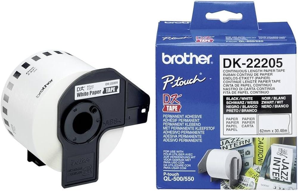The Brother DK-22205 Label Tape provides a high-performance labeling solution for professional and industrial environments. This continuous length paper tape integrates seamlessly with Brother QL-series thermal printers. It utilizes direct thermal printing technology. Consequently, users do not require expensive ink or toner cartridges. The 62mm width accommodates various applications. These range from shipping labels to internal signage. Therefore, it remains a versatile asset for logistics and administrative workflows.