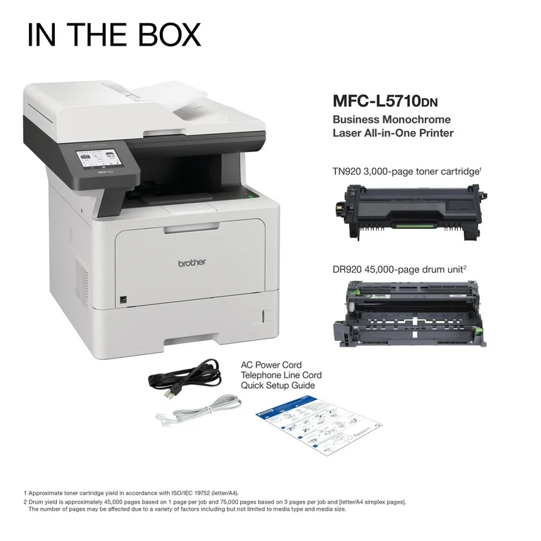 The Brother HL-L5210DN Laser Printer provides high-speed monochrome output for mid-to-large workgroups requiring consistent throughput and network reliability. This unit features a 1.2GHz Dual Core processor and 512MB of onboard memory to manage complex print queues effectively. It delivers a First Print Out Time (FPOT) of less than 6.7 seconds. Consequently, users experience minimal latency during high-volume print runs. The hardware architecture supports a maximum monthly duty cycle of up to 90,000 pages. Therefore, it suits environments with demanding document workflows and high uptime requirements.