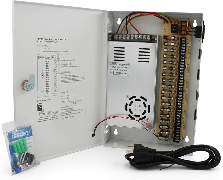 With its 20A output, this power supply can run multiple CCTV cameras and accessories simultaneously without voltage drops. Installers benefit from its secure, professional design that keeps wiring organized and stable, reducing downtime and maintenance issues.