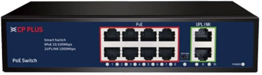 The CP Plus AI PoE Switch functions as a high-density power delivery and data switching solution specifically engineered for IP surveillance and professional networking environments. This hardware integrates 16 10/100 Mbps PoE ports alongside dual Gigabit RJ45 uplinks and a dedicated SFP combo port to ensure high-speed backhaul connectivity to core switches or NVR systems. The architecture utilizes a store-and-forward switching mechanism to maintain data integrity across all connected nodes. Additionally, the inclusion of specialized AI management modes allows network administrators to optimize traffic flow and power distribution without complex manual configurations.