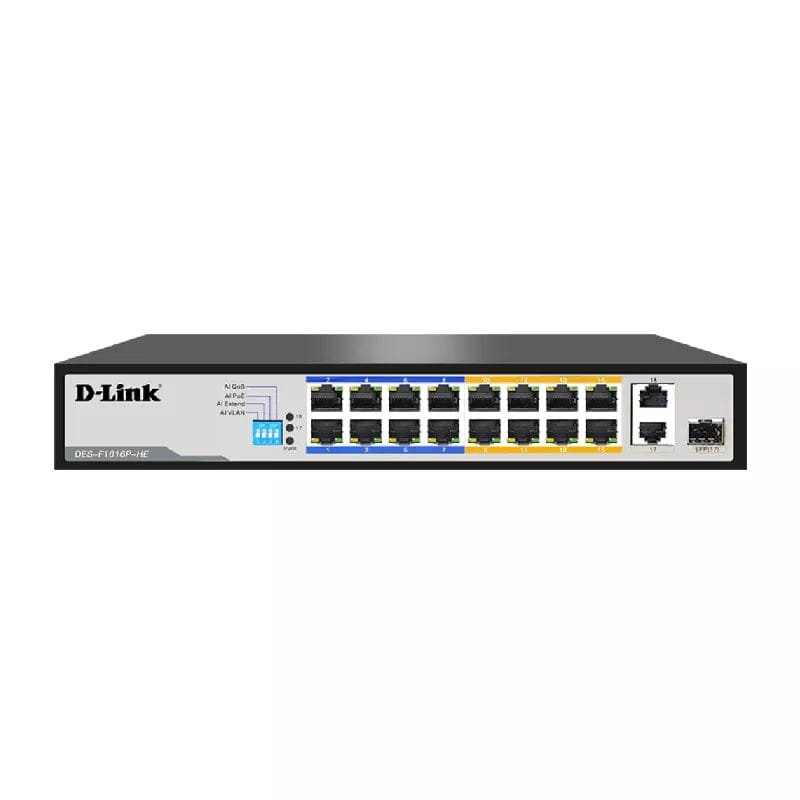 - D-Link DES-F1016P-E 16-Port PoE+ Switch