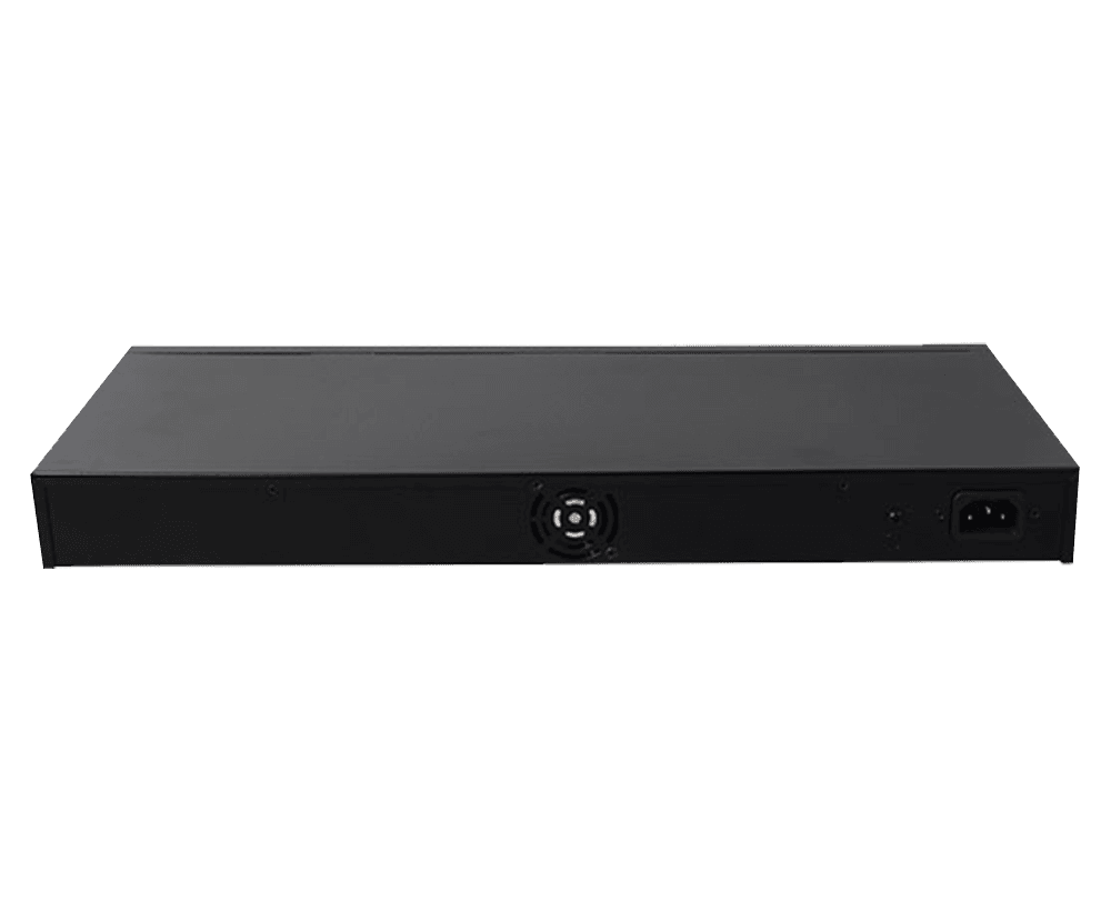 • The fan-cooled metal chassis maintains optimal thermal performance under full PoE load.