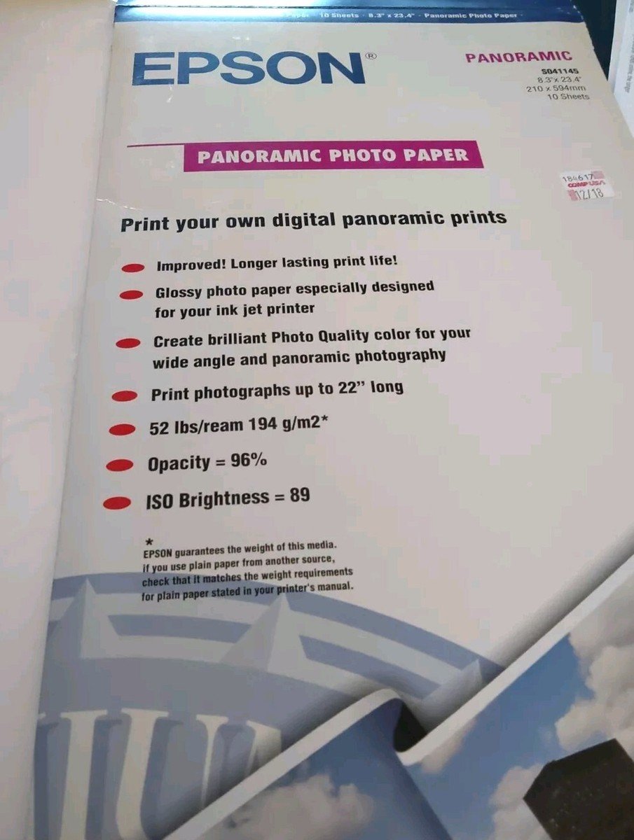 • 1 x Pack of Epson C13S041145 Panoramic Glossy Photo Paper (20 Sheets)