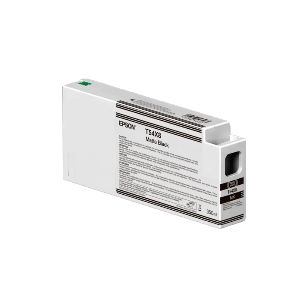The Epson T54X8 Matte Black cartridge utilizes advanced UltraChrome HDX pigment chemistry to deliver professional-grade results for wide-format printing. This high-capacity 350ml unit is engineered for the SureColor SC-P series, providing the high optical density required for fine art and photographic reproduction. The formulation incorporates a high-density pigment structure that ensures superior lightfastness and archival stability. Consequently, print service providers can achieve consistent tonal transitions and deep black levels on a variety of matte-finish media types.