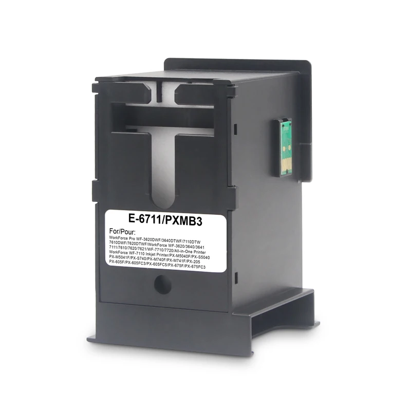 The Epson T6711 Maintenance Box is a critical user-replaceable component designed to collect excess ink during print head cleaning cycles and borderless printing operations. This unit ensures operational continuity for high-volume inkjet printers by preventing internal hardware contamination. It utilizes an integrated electronic circuit to communicate real-time capacity data to the host printer firmware. Consequently, the device prevents overflow scenarios that could damage internal mechanical assemblies or electrical components. This hardware is essential for maintaining the precision of the PrecisionCore printhead technology found in compatible WorkForce and L-series models.