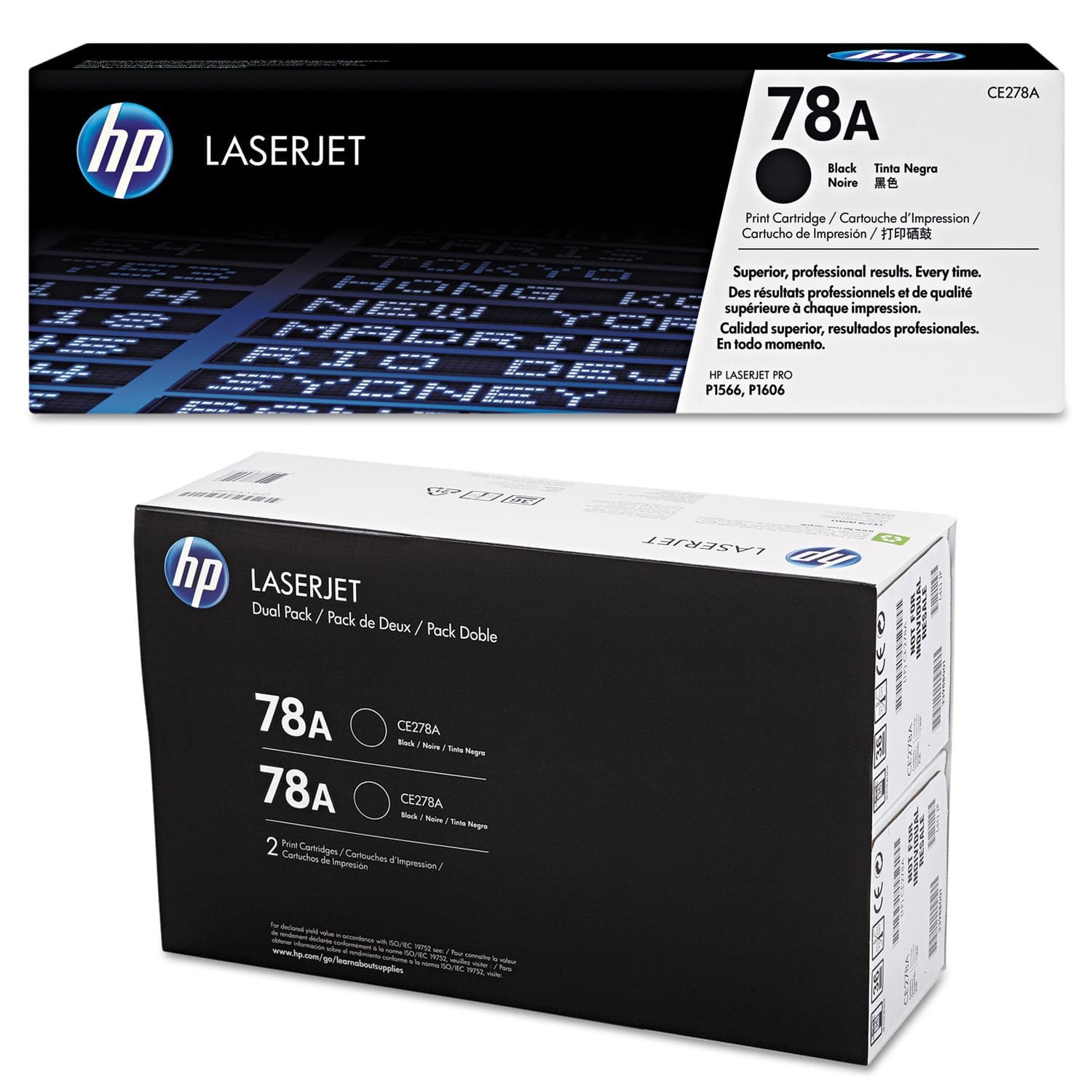 HP 78A Black LaserJet Toner Cartridge, 2100 Page Yield, CE278A