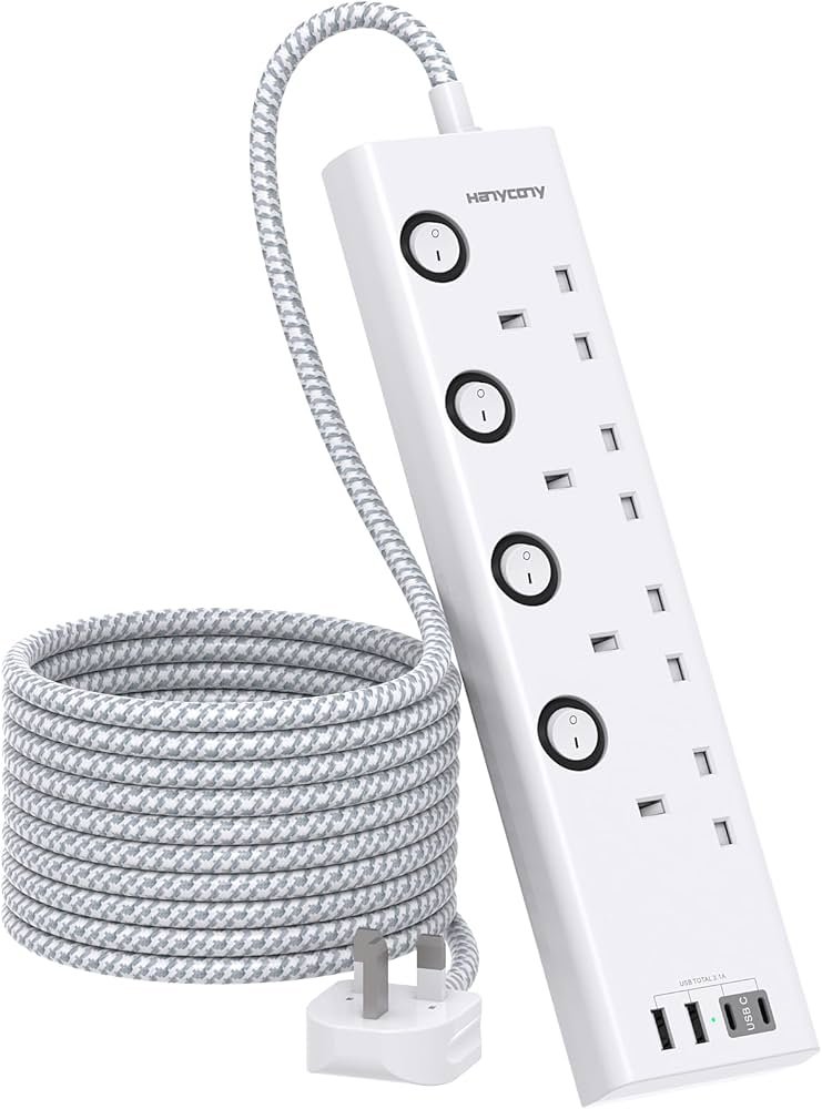 Lightwave EXT-42C1U-3P Extension Socket 4-Way 2xUSB-C 1xUSB-A 3m