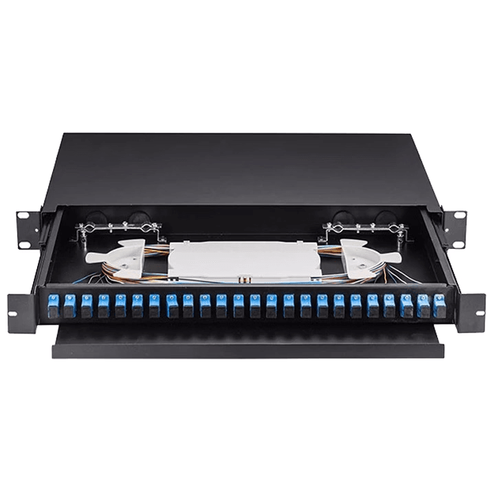 The unit supports 24 LC duplex connections within a compact 1U form factor to maximize rack space utilization.Integrated Splice Management