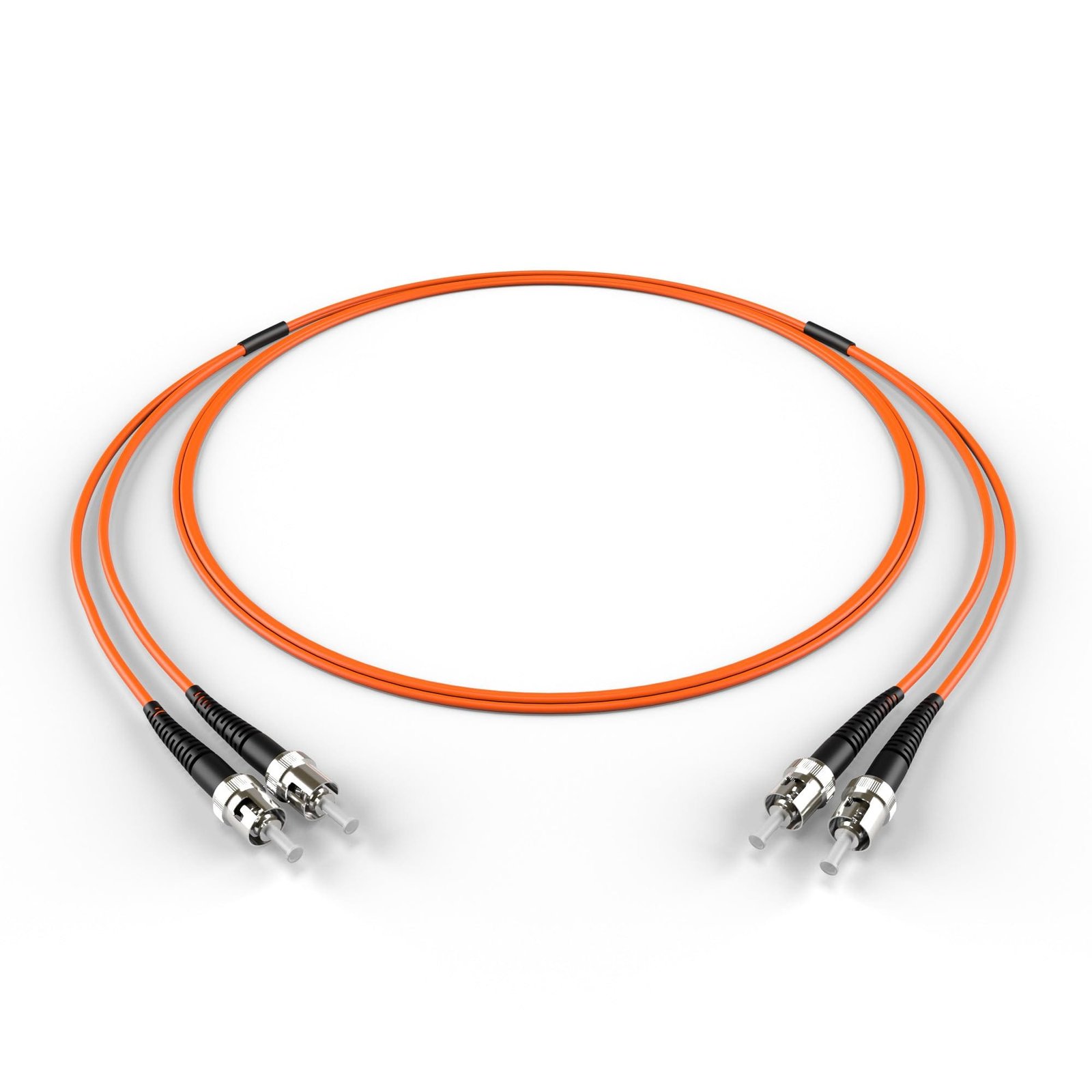 - Orange jacket color follows TIA-598 standards for easy identification of OM2 multimode fiber within complex cable bundles.