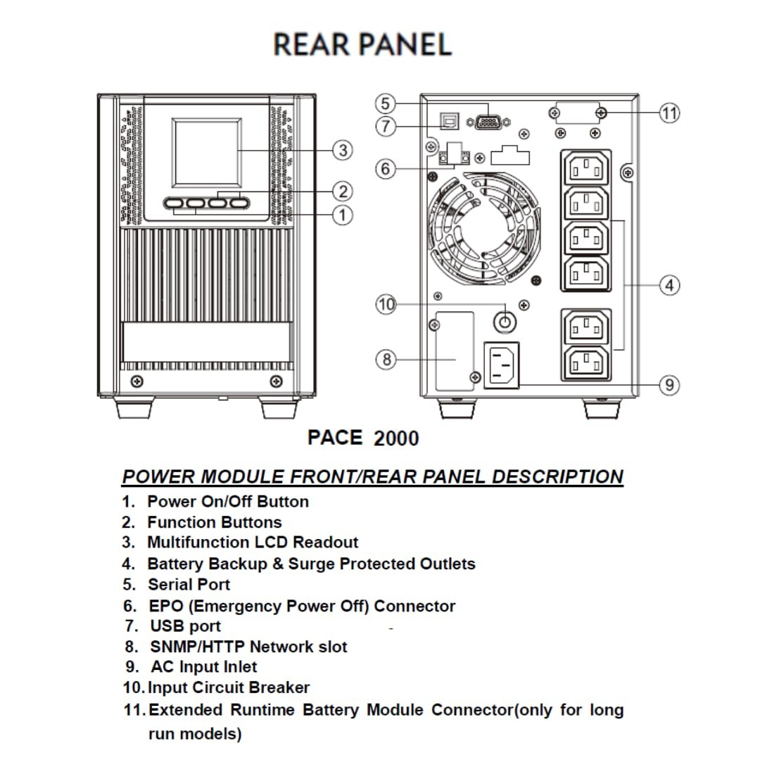 | Ports | USB, RS232, SNMP Slot, EPO |