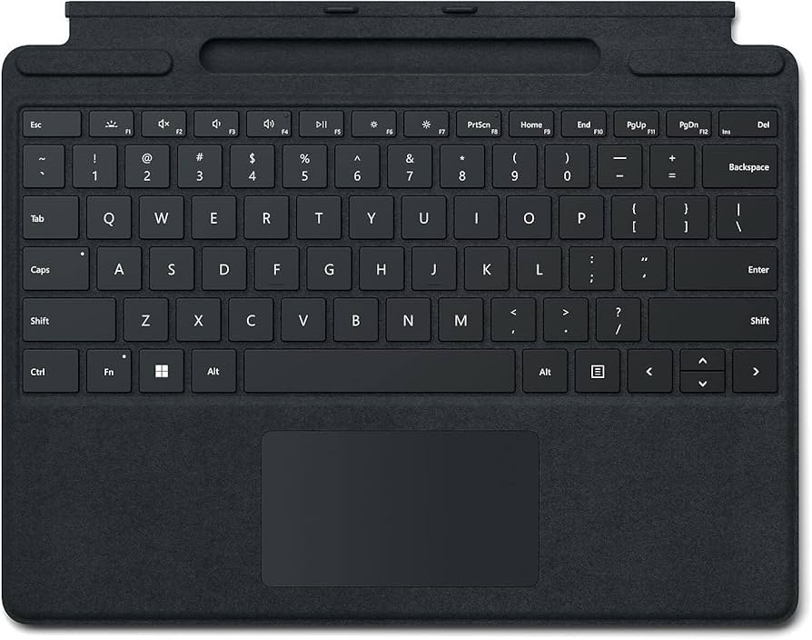 The Microsoft Surface Pro Keyboard functions as a high-performance mechanical input solution designed for the Surface Pro ecosystem. This hardware component utilizes a proprietary magnetic interface to facilitate a secure, physical connection to the tablet chassis. It features a full QWERTY layout including a complete row of function keys (F1-F12), Windows shortcut keys, and dedicated media controls. The integration of LED backlighting ensures operational visibility in environments with restricted ambient light. This accessory significantly enhances data entry throughput for mobile professionals and technical staff.