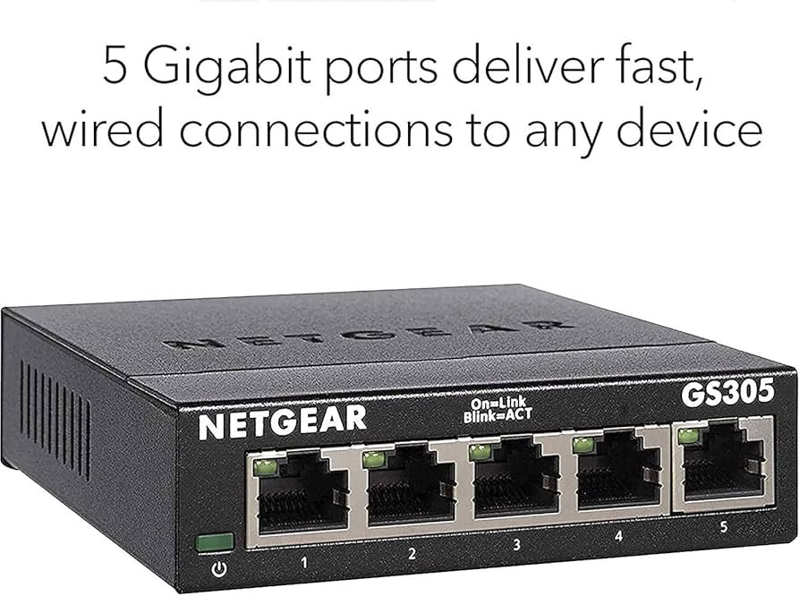 1 × NETGEAR GS305-300PES 5-Port Gigabit Unmanaged Switch