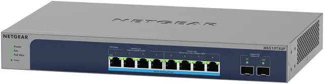 The NETGEAR MS510TXUP-100EUS is a next-generation Multi-Gigabit L2+ Smart Managed Switch engineered to support modern high-bandwidth and high-power network applications. Featuring 4× 1G/2.5G ports, 4× 1G/2.5G/5G/10G multi-gig ports, and 2× dedicated 10G SFP+ fiber uplinks, this switch is optimized for WiFi 6/6E access points, IP surveillance, high-density PoE deployments, and advanced LAN aggregation.