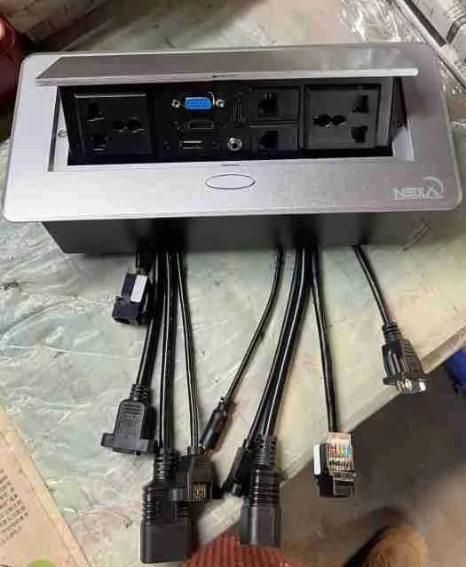 Its silver finish and robust zinc alloy + iron build provide durability while blending seamlessly with office or home interiors. Ideal for conference tables and collaborative workstations, it delivers organized access to power and connectivity at the touch of a button.