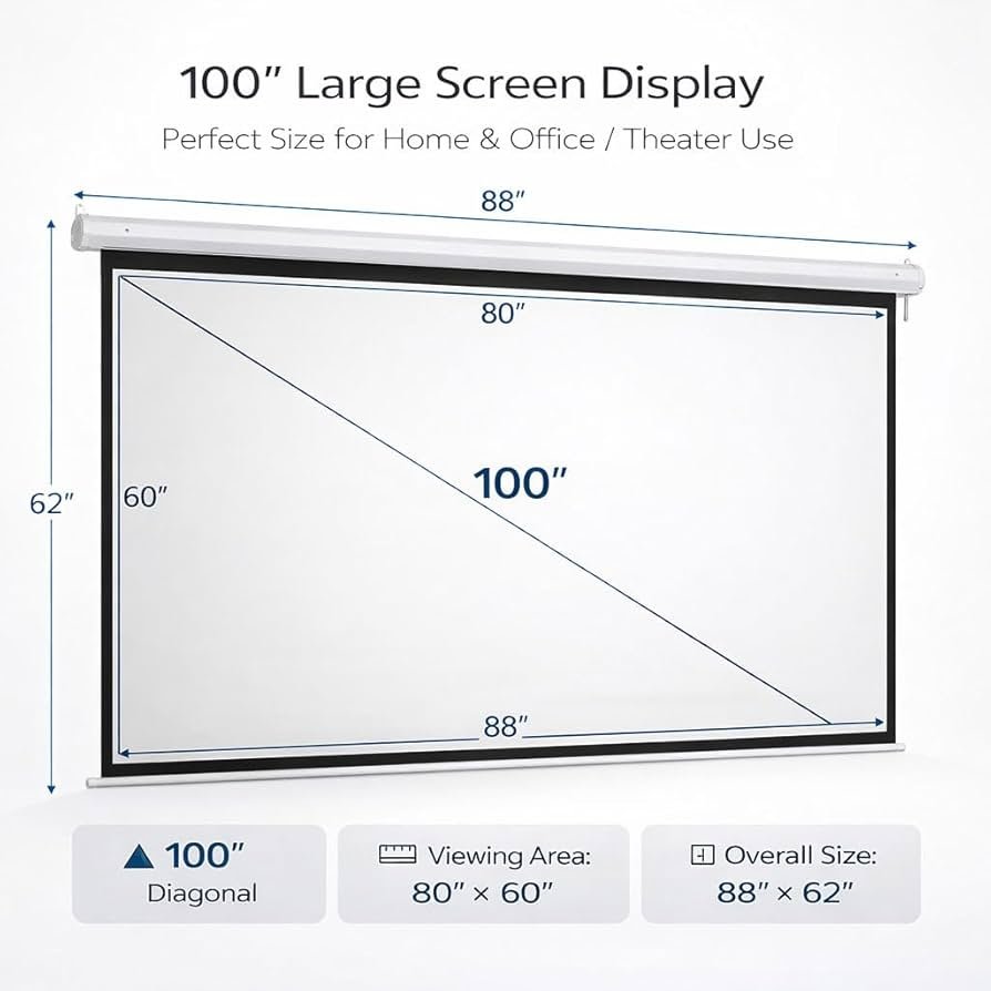 OfficePoint 100-Inch Manual Wall Mount Projector Screen (80×60)