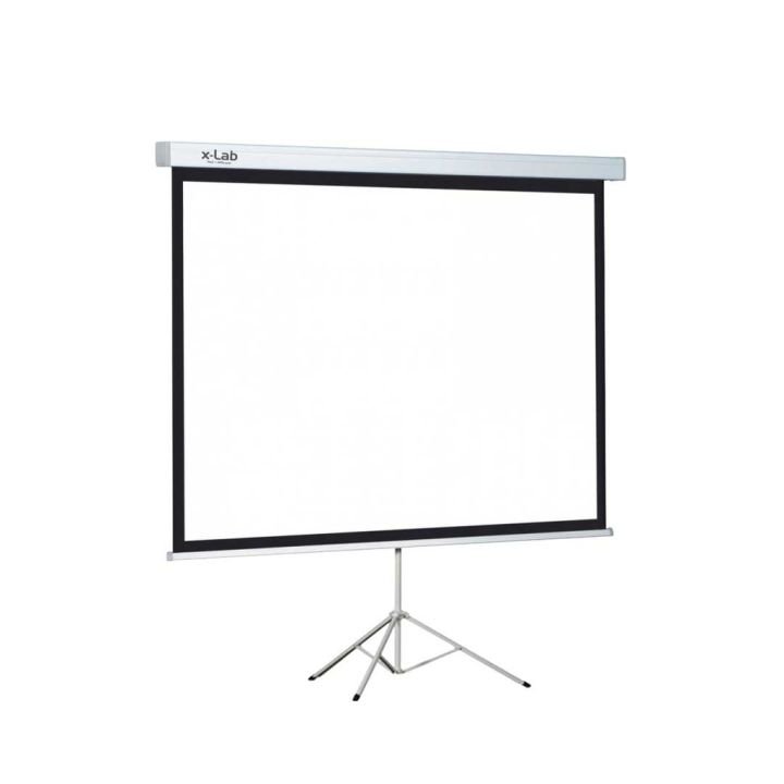 The OfficePoint 60×60 Projector Screen provides a versatile and durable solution for mobile presentation environments in corporate and educational sectors. This manual tripod system features a 152cm by 152cm viewing area constructed from high-grade matte white fabric. It supports a 1:1 aspect ratio natively while allowing for variable height adjustments to accommodate 4:3 and 16:9 formats. The integrated tripod base ensures structural stability during operation on diverse floor surfaces.