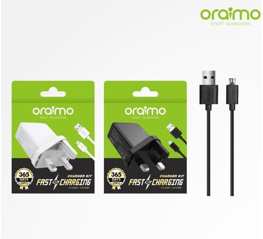 The Oraimo CU-60ZR+CD-52BR Charger Kit (Black) is a charger kit that includes a fast-charging wall adapter and a durable charging cable. Engineered for efficiency, it supports 2A charging speeds, ensuring quick power delivery to smartphones and tablets.