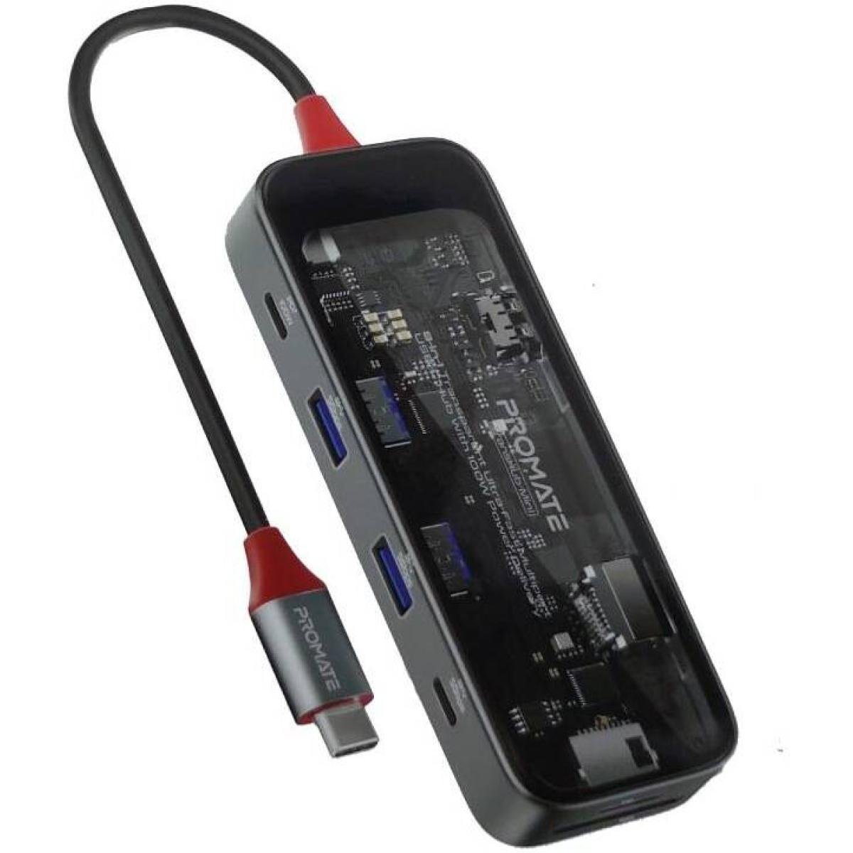 Promate TransHub-Mini 8-in-1 USB-C Hub 100W PD 4K HDMI Gigabit Ethernet