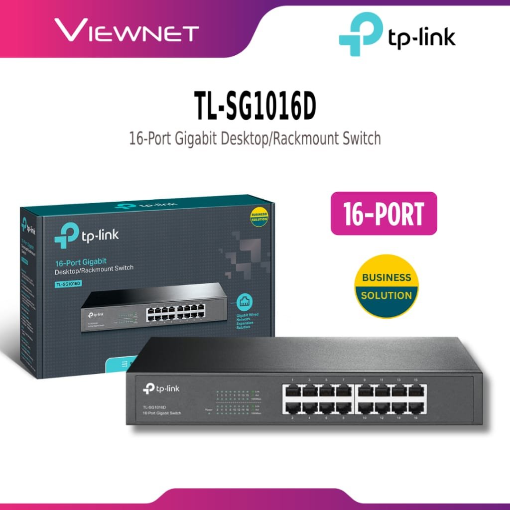 The TP-Link TL-SG1016D is a 16-Port Gigabit Desktop/Rackmount Switch designed for seamless network expansion. With plug-and-play installation, energy-efficient technology, and reliable Gigabit performance, it’s perfect for small to medium business networks that demand speed, efficiency, and stability.