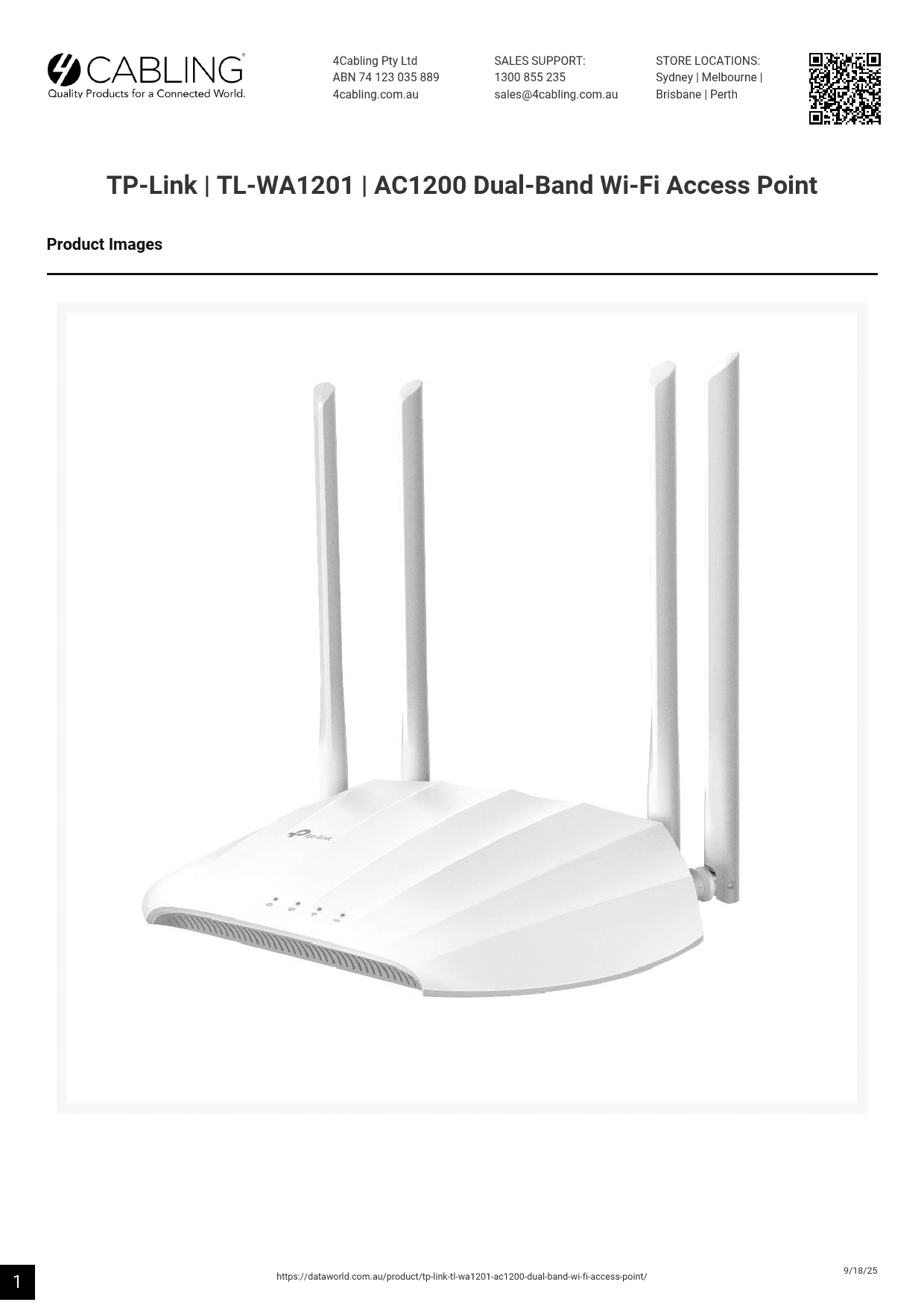 - TP-Link AC1200 Wireless Access Point (TL-WA1201)