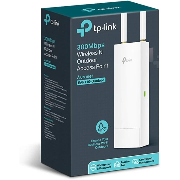 The TP-Link N300 Wireless N Access Point – TL-EAP110-Outdoor is a durable weatherproof wireless access point designed for both indoor and outdoor use. Delivering speeds up to 300 Mbps, it features 2×2 MIMO technology, Omada SDN integration, and remote cloud management for seamless deployment and control.