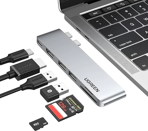 The Ugreen CM380 USB-C Hub provides a specialized connectivity solution for Apple MacBook Pro and MacBook Air laptops equipped with dual side-by-side Type-C ports. This hardware expansion unit integrates six essential ports into a single high-performance chassis. It bridges the gap between legacy peripherals and modern high-speed interfaces without requiring external power supplies.