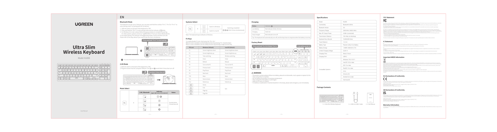 The Ugreen Wireless Keyboard (Model KU005) provides a professional-grade input solution utilizing a 2.4GHz radio frequency connection to ensure stable data transmission across a 10-meter range. This peripheral integrates a full-sized 104-key layout into an ultra-slim chassis, measuring only 1.6cm at its thickest point. The internal architecture employs a high-precision chipset that maintains low latency, which is critical for high-volume data entry and administrative tasks in modern IT environments. Consequently, users experience a responsive interface that mirrors the performance of wired alternatives without the constraints of physical cabling.