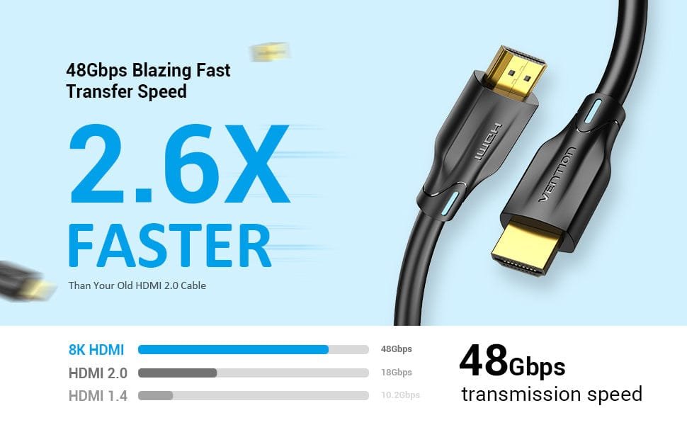 The Vention 8K HDMI Cable utilizes the HDMI 2.1 standard to provide a maximum bandwidth of 48Gbps for high-resolution AV distribution. This digital interface supports uncompressed video resolutions up to 8K at 60Hz and 4K at 120Hz. The architecture incorporates Fixed Rate Link (FRL) technology to ensure stable signal transmission over the three-meter length. Consequently, this cable meets the rigorous demands of professional workstations, digital signage, and advanced monitoring systems.