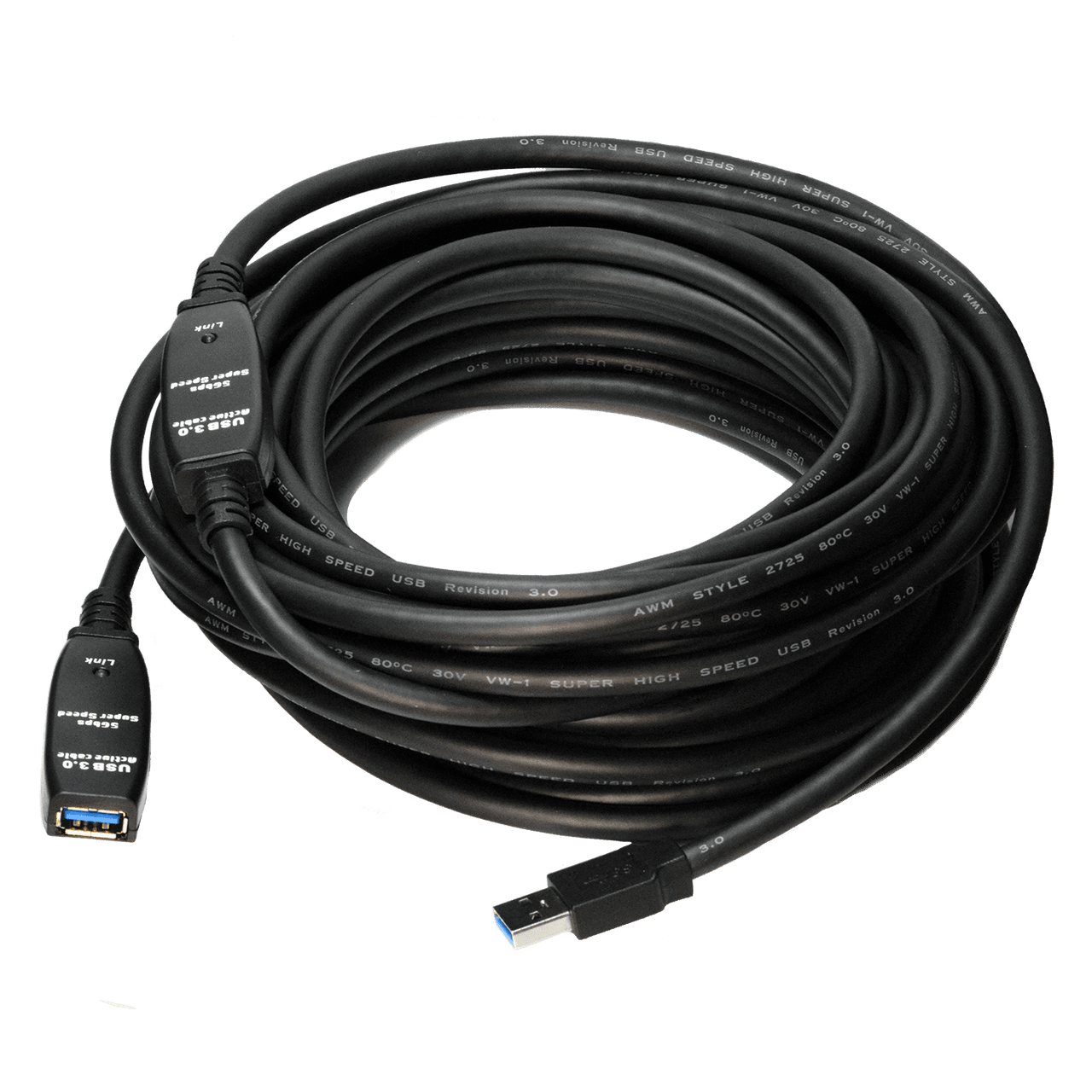 An integrated IC chipset boosts the data signal to overcome resistance over the 10-meter length.SuperSpeed Data Transfer