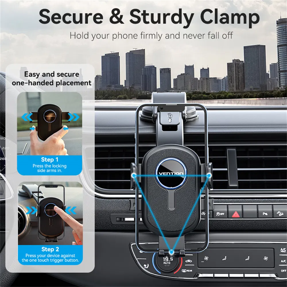 The Vention KSAB0 Car Mount integrates a dual-fixation architecture designed for high-stability mobile device deployment within professional or industrial vehicle environments. This hardware features a hybrid mounting system that includes a high-viscosity vacuum suction cup for dashboard or windshield applications and a reinforced Y-shaped clip for secure attachment to air vent louvers. The primary chassis utilizes a square-type clamping head with an automated one-touch locking mechanism. This system allows for rapid device insertion and removal using a single hand. Consequently, it minimizes operational downtime during transit. The internal gearing is engineered for high-tension grip, ensuring the mobile unit remains stationary even under significant centrifugal force or vertical vibration.