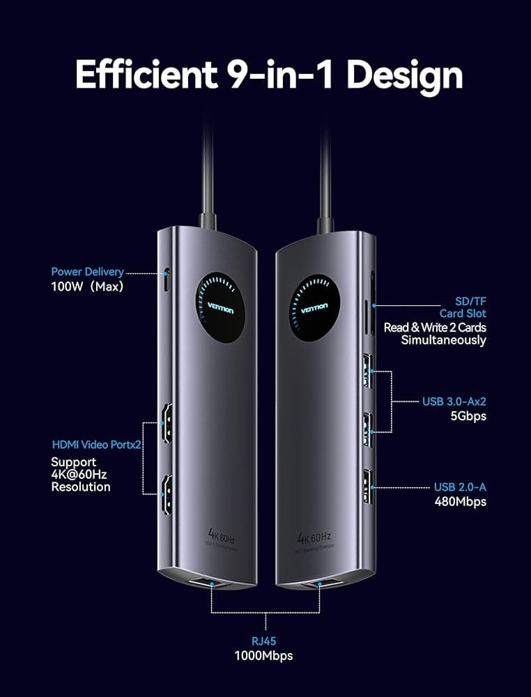 The Vention USB-C Docking Station provides a high-performance solution for expanding port density on modern laptops with limited I/O. This hardware interface integrates five essential ports into a compact aluminum alloy housing. It utilizes the USB 3.1 Gen 1 protocol to facilitate high-speed data synchronization across multiple peripherals simultaneously. Consequently, network engineers and IT professionals can maintain high productivity without the need for multiple discrete adapters. The architecture supports plug-and-play functionality across major operating systems including Windows, macOS, and Linux.