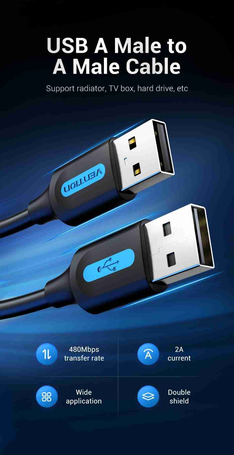 - 1 x Vention USB 2.0 A Male to A Male Cable (1M)