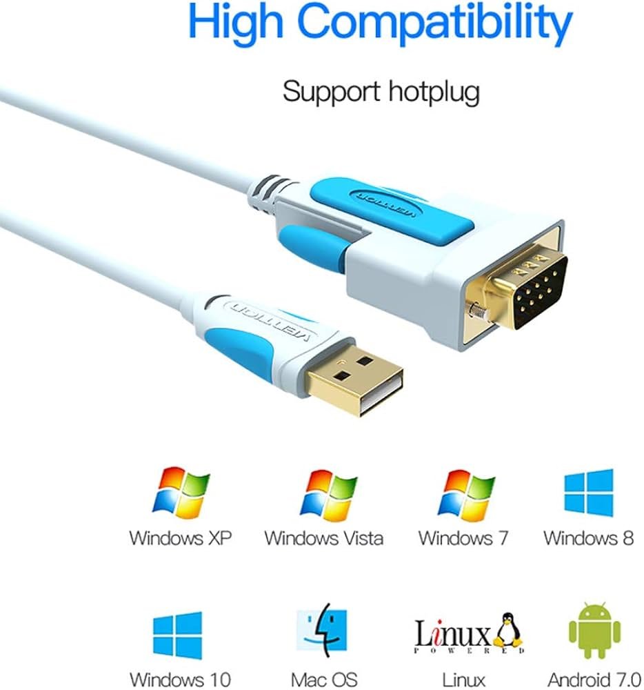 The Vention USB RS232 Adapter enables high-speed serial communication between modern USB-equipped computing systems and legacy DB9 peripherals. This hardware interface utilizes the Prolific PL2303 chipset to ensure timing accuracy and data integrity. It features a 1-meter cable length with tinned copper conductors for optimal signal conductivity. Network engineers utilize this tool for direct console access to switches and routers. It supports standard RS232 protocols and provides an essential bridge for industrial automation environments. This converter operates without an external power source by drawing current directly from the host USB port.